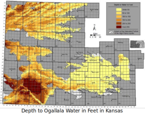 This is not sustainable. Considering the drought, some options are to switch from growing very thirsty corn to more dryland crops like winter wheat, beans, or sunflowers, to rely less on cornfed feedlot cattle, and to adopt no-till methods plus cover crops. But all the same, it still comes down to water. To address the depletion of the Ogallala Aquifer, two counties in far west-central Kansas are exploring natural ways of recharging the aquifer.