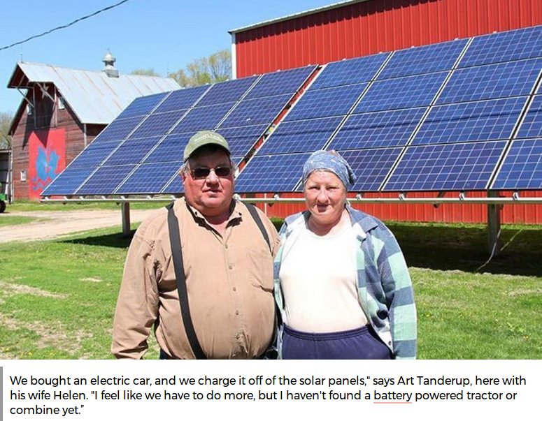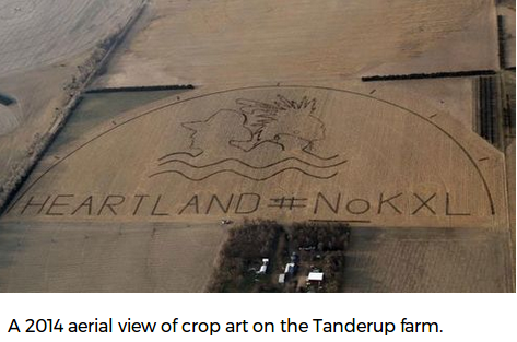 “In August, Bold Nebraska (in coordination with 350.org, Indigenous Environmental Network, and a coalition of other groups) launched a $50,000 dollar crowdfunding effort to build solar installations inside the proposed pipeline route. Said Tanderup ‘My wife and I try to burn biodiesel, we try and burn ethanol, but we need to do more. We invested in a solar system for our farm’. The 91% of the farm’s kilowatt needs it generated last year wasn’t enough to satisfy them. ‘So, we bought an electric car, and we charge it off of the solar panels.’ Now that his eyes are open, Jim Carlson sees the signs of a warming climate all around him. Rising global temperatures make for an earlier spring. ‘We plant corn three weeks earlier than we used to’, he says.” Read more at – This land is (still) their land. Meet the Nebraskan farmers fighting Keystone XL.