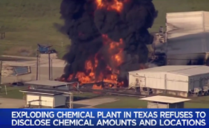 On 31 August 2017, flooding interrupted electric supply to the Arkema peroxides plant. With no back-up power to keep storage tanks of chemicals refrigerated, rising temperatures triggered two spontaneous explosions. Fifteen police officers were taken to a hospital for inhaling fumes, while a 1.5-mile evacuation zone was imposed. Rather than allow the remaining tanks to reach explosive temperatures, on 2-3 September, the company staged “controlled ignition” of six more tanks (set them on fire), to “neutralize” the chemicals as the company described it – Evacuation zone around Arkema’s Texas plant lifted after controlled ignitions. TEJAS and UCS and others had demanded full disclosure of what was in the tanks, and what compounds would then be in the black smoke that neighbors would be breathing, but Arkema refused – (video) Smoke from chemical plant fires caused by Houston flood raises concerns, and As Arkema Plant Burns, Six Things We Know About Petrochemical Risks in the Wake of Harvey.