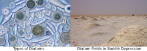 10,500 years ago, a 5000 year period of monsoon rains over the Sahara Desert transformed the region into lush and habitable savanna. A number of low areas became lakes, and as with other bodies of water, there flourished an organism, four times thinner than a human hair, called a diatom, a type of phytoplankton. Each diatom lives only six days, yet they amass in vast numbers by doubling their population every 24 hours. After each boom-bust cycle, billions of dead diatoms settle to the bottom of oceans or seas, accumulating in thick layers. The key to future oxygen cycles lie in two essential minerals in the diatoms’ “skeletons” – phosphorous and iron – Saharan Dust Feeds Amazon’s Plants, and The Amazon Rainforest Gets Half Its Nutrients From a Single, Tiny Spot in the Sahara.